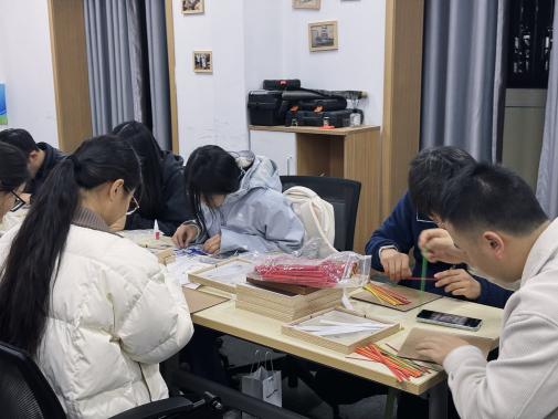 当日下午,支部党员和入党积极分子在21宿活动室参加了“指尖非遗·匠心如磐”党风廉政主题实践活动。活动将廉政教育融入非遗手工艺体验,设置了竹编画、金箔画和青花陶瓷画三项内容。